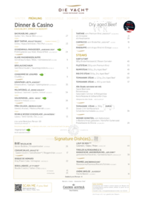 Tischreservierung in der YACHT unter Tel. 0664 2064 515, cuisino.velden@casinos.at.