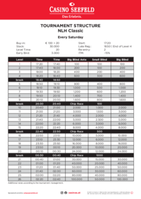 Tournament structure Saturday Poker Challenge NLH Classic