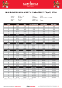 Tournament Structure NLH Eastermania Crazy Pineapple