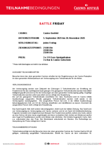 Auch wer das Duell im Battle nicht für sich entscheidet, geht im Casino Seefeld nicht leer aus. Freu dich auf einen Bar & Casino Gutschein als Trostpreis nach deinem Einsatz im 1-gegen-1.