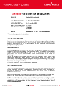 - Sammle vom 1. bis zum 22. November 2025 bei jedem Besuch im Casino Kleinwalsertal eine Teilnahmekarte.