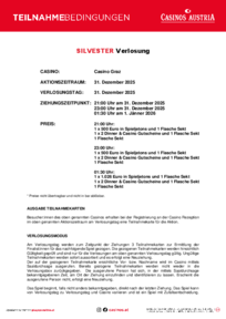 Für nur € 37,- erhalten die Gäste des Casino Graz an der Rezeption das Silvester Package mit...