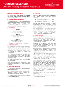 Beim spannenden Roulette-Turnier hast du jeden Freitag von 20:00 bis 23:00 Uhr die Chance auf diesen actionreichen Preis. Auch die Zweit- und Drittplatzierten gehen natürlich nicht leer aus. Ihnen winken verschiedene Casino Gutscheine.